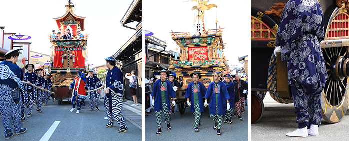 高山春季和秋季的祭典使飞驒高山市闻名遐迩。这个著名的节日已被列入重要非物质民间文化遗产名录和联合国教科文组织世界遗产名录。节日的一大亮点是被称为“屋台”的大型花车,据说这种花车起源于1718年左右。春季的山王祭上会有 12 辆花车聚集在一起,秋季的八幡祭上会有 11 辆花车聚集在一起,形成壮观的景象,令所有看到它的人都叹为观止。23辆花车各具特色,拉车人的服装也因花车组而异,延续了自古以来传承下来的设计。
